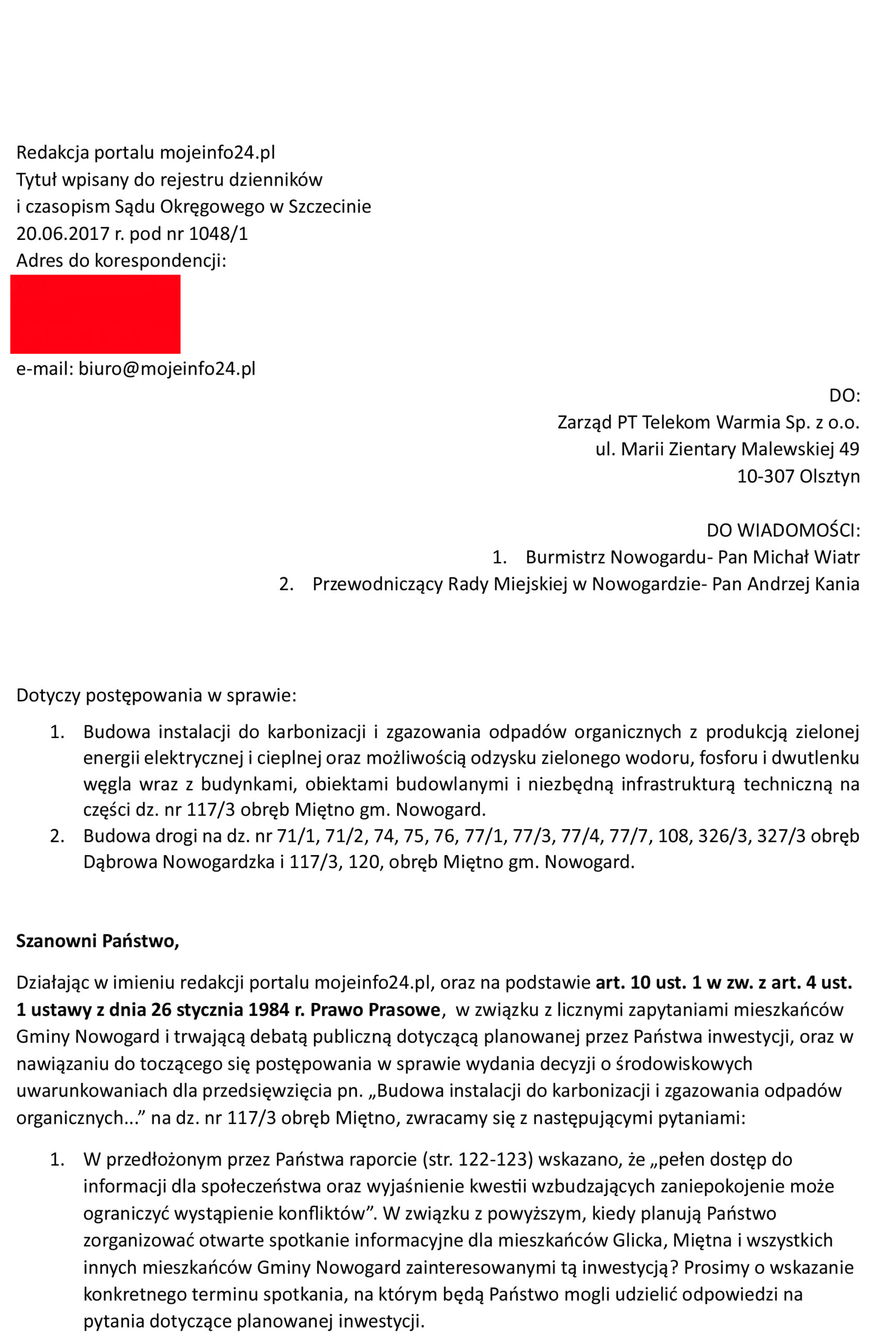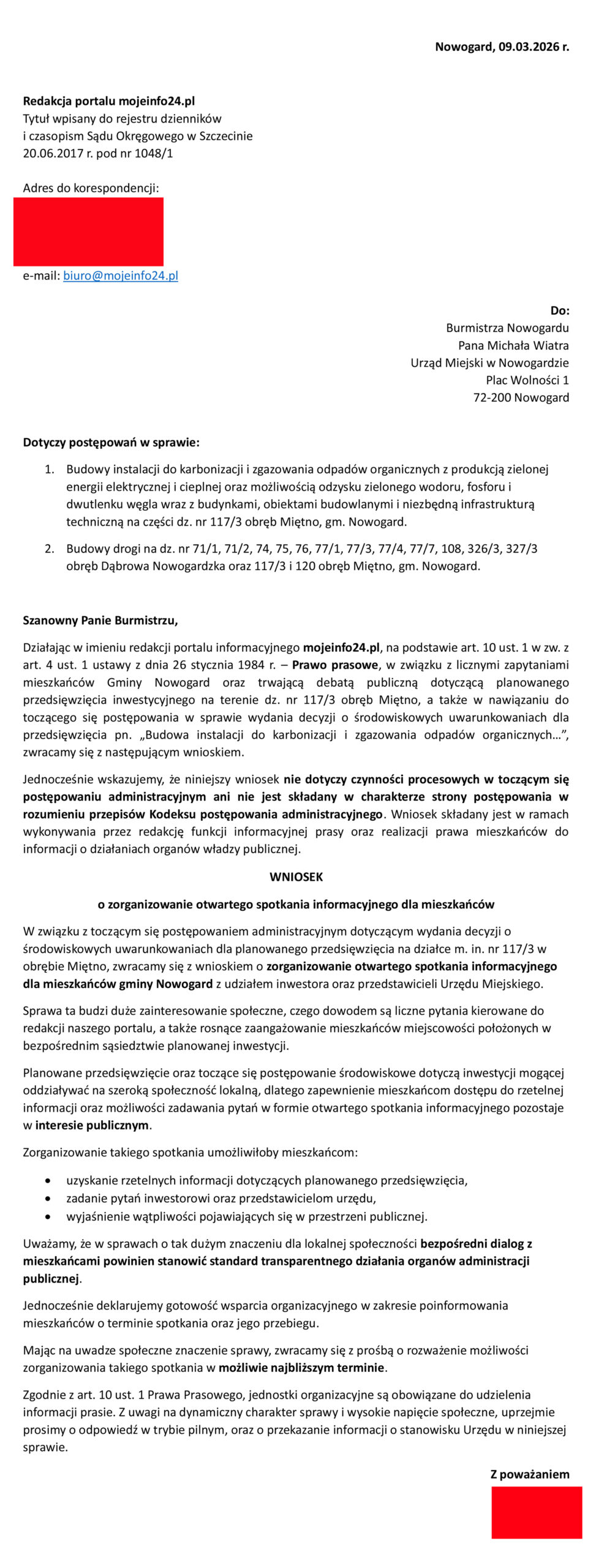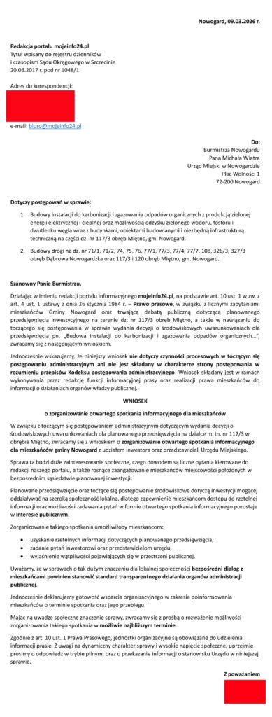Jako redakcja i jako mieszkańcy Gminy Nowogard mówimy: DOŚĆ! Nie będziemy się domyślać, co planujecie za naszymi plecami. Podjęliśmy oficjalne działania: